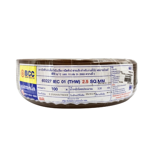 สายไฟเดี่ยว IEC 01 THW 1*2.5 BCC น้...
