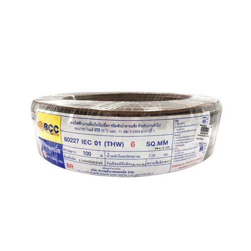 สายไฟเดี่ยว IEC 01 THW 1*6 BCC สีน้...