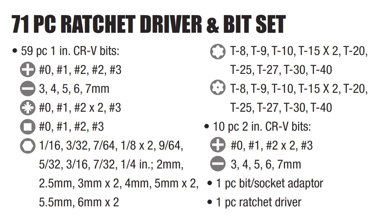 ไขควง+งานขันด้ามฟรี71ตัวชุด900177TA...